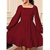 blibean Vestido de manga larga con lazo en la espalda para niñas, vestido de otoño con hombros descubiertos, talla 6-15 años