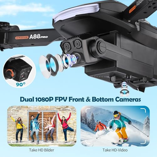 Blumacht Dron Plegable con Cámara HD 1080P, FPV Wi-Fi Gran Angular 120°, Fácil Despegue/Atterrizaje, Giro 360°, Follow Me, Fotos por Gestos, 2 Baterías – Ideal para Niños y Principiantes