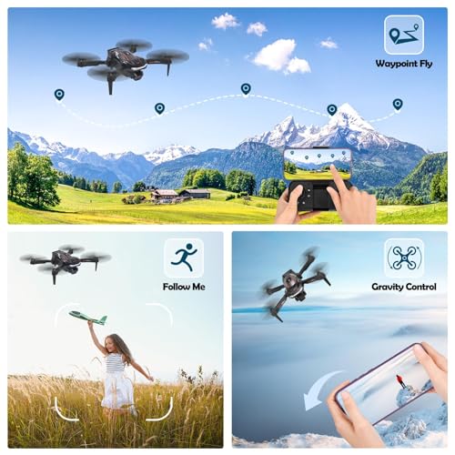 Muchas Funciones Interesantes: Explora los cielos con características emocionantes como la navegación por waypoints, selfies controlados por gestos y emocionantes giros de 360°. La función de seguimiento automático es perfecta para rastrear movimientos durante deportes al aire libre, y múltiples configuraciones de velocidad se adaptan tanto a principiantes como a jugadores experimentados, prometiendo una experiencia de vuelo personalizada
