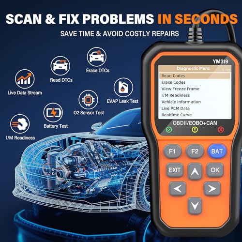 Especificaciones: BluSon YM319 OBD2 Herramienta de diagnóstico con probador de batería, lector de código de motor mejorado con datos en vivo, impresión en la nube, búsqueda de TDC, marco congelado, herramienta de