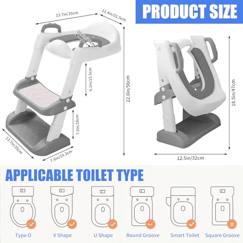 SEGURO Y ADECUADO PARA NIÑOS – Asiento inodoro niños El orinal de entrenamiento para niños está diseñado con almohadillas antideslizantes y una escalera para evitar que el asiento se mueva. vater para niños está diseñado con asas para ayudar al bebé a subir.