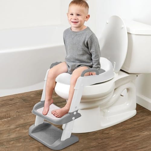 El asiento de inodoro de entrenamiento para niños pequeños proporciona una excelente comodidad y confianza para su bebé, adecuado para niños y niñas, entrenador de inodoro con escaleras. Es un buen regalo para ayudar a su bebé a crecer.