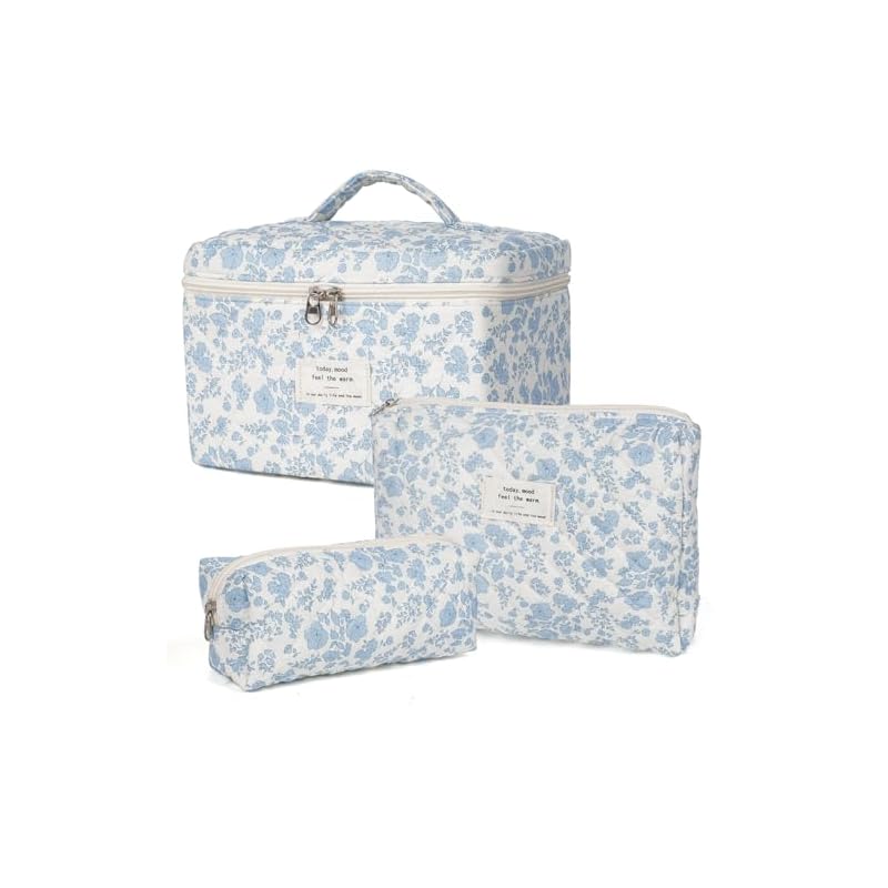 Bolsa de maquillaje, bolsa de cosméticos acolchada, bolsa de maquillaje floral grande para mujeres, juego de bolsa de maquillaje de algodón, bolsa de aseo de viaje con flores