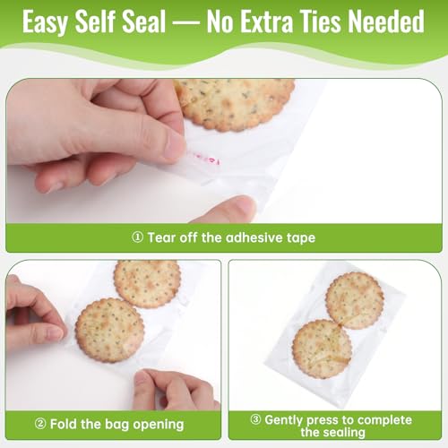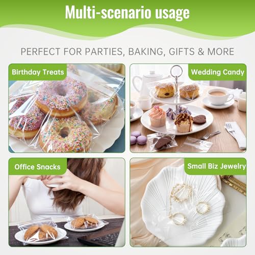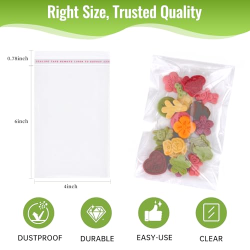 Bolsas de galletas transparentes de 4 x 6 pulgadas, 200 unidades, bolsas de celofán autoselladas, de grado alimenticio, envoltorios transparentes resellables para galletas, dulces, aperitivos