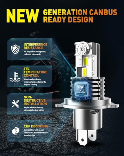 Instalación Plug & Play de 5 minutos: olvídese de cableado complejo o modifique su carcasa. Con un verdadero diseño que imita halógenos y un enchufe sin polaridad, nuestras bombillas H4/9003/HB2 se instalan perfectamente en tu enchufe de fábrica en minutos. Sin controladores voluminosos, sin mensajes de error: simplemente desconecta la vieja bombilla y conecta el nuevo LED para una actualización instantánea