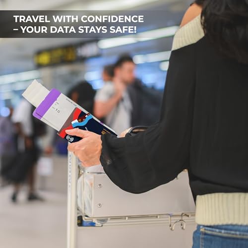Hechos de material de bloqueo RFID especial, este portatarjetas de crédito y soporte para pasaporte con bloqueo RFID es delgado y ligero; fundas seguras certificadas para tarjetas de crédito protegen contra el escaneo de chips digitales y electrónicos por ladrones, desgarros y resistente al agua.
