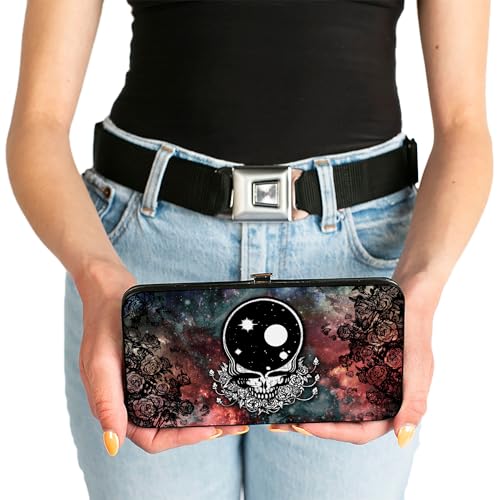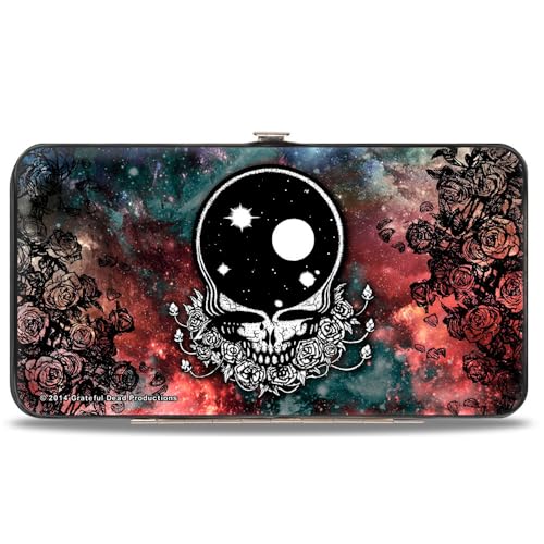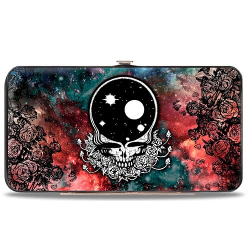 Te encantará esta cartera. Elegante y delgada, esta cartera abatible está hecha de cuero vegano y acero inoxidable. Mide 7 x 4 x 0.75 pulgadas, con 2 fundas para billetes, 4 ranuras para tarjetas y un soporte para identificación de ventana. La hermosa obra de arte se aplica utilizando la última tecnología de impresión, por lo que durará bien con el tiempo. Este producto se vende en los Estados Unidos por Buckle-Down Inc. Fabricado y con licencia oficial de Grateful Dead.