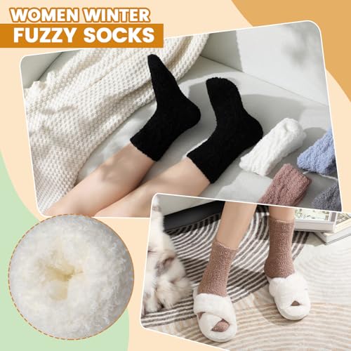 Calcetines peludos para mujer, 5 pares de calcetines cálidos y acogedores para mujeres y mamá, calcetines tipo pantufla