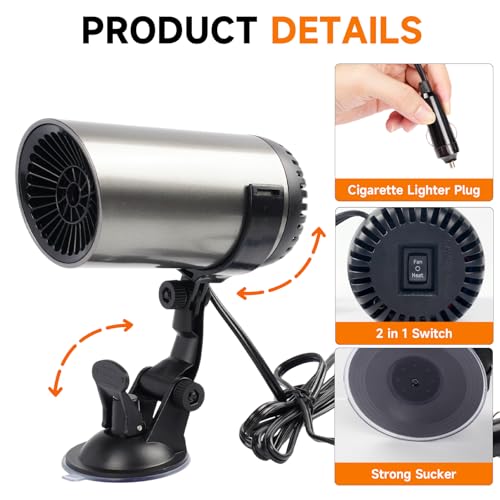 Calentamiento rápido de alta eficiencia: este potente calentador de coche puede calentar rápidamente el aire en pocos minutos, calentando su invierno. Mantén eficazmente la vista del parabrisas clara y evita que la niebla o las heladas difuminen la línea de visión.