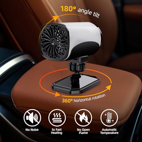 Diseño de 360°: la cinta adhesiva de doble cara incluida garantiza una instalación segura y mantiene el ventilador firmemente en su lugar en tu automóvil. El soporte gira 360° horizontalmente para que puedas asegurar el calentador en tu posición preferida. También puede ajustar la altura verticalmente en un ángulo pequeño.