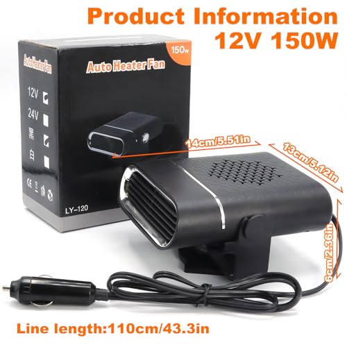 Seguro y fácil de usar: este calentador y descongelador portátil para automóvil es fácil y rápido de instalar. El enchufe del puerto de encendido garantiza un calentamiento rápido y seguro. Con un cable de 4.9 ft de largo, puede desempañar varios lugares dentro de tu vehículo.