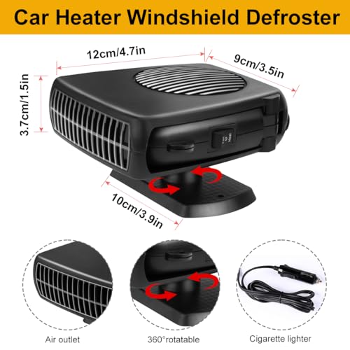 Ajuste de 360 grados: el calentador portátil para automóvil está diseñado con base giratoria de 360 grados, fácil de controlar, que se puede utilizar para ajustar y dirigir fácilmente como una ventilación de automóvil, por lo que puedes ajustarlo a tu ángulo preferido.