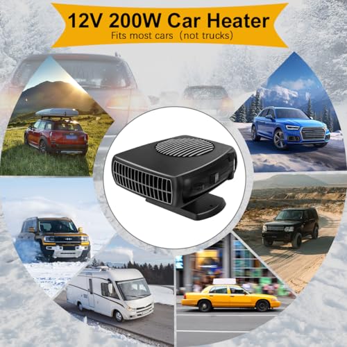 Calentador de coche, 200 W, 12 V, portátil, desempañador y descongelador, 2 en 1 modos de calefacción rápida y refrigeración ventiladores con enchufe para encendedor de cigarrillos, base giratoria de