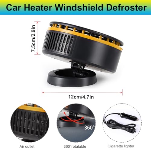 Calentador de coche de 12 V, calentador portátil de calentamiento rápido para automóvil, descongelador, desempañador, calentador de parabrisas para automóvil, encendedor de cigarrillos, giratorio de 360 grados para automóvil de 12 V