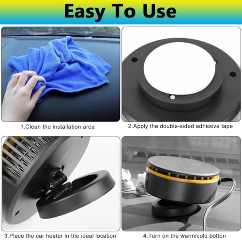 Amplia aplicación: nuestro calentador de enchufe no se limita a solo automóviles; sirve para múltiples propósitos, por lo que es adecuado para varios escenarios como camping, caravana y viajes. Se adapta a todos los modelos de automóviles y vehículos equipados con un encendedor de cigarrillos de 12 V. Con su bajo consumo de energía y una salida mínima de ruido, proporciona un flujo de aire fuerte y cómodo. Además, la cinta adhesiva de doble cara incluida garantiza una instalación segura, lo que permite que el ventilador se fije firmemente en tu vehículo, ya sea un automóvil familiar, furgoneta, maletero, SUV, RV o incluso un barco