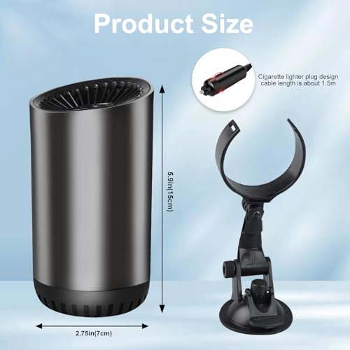 Ajuste de 360 grados: el calentador de coche está diseñado con un soporte giratorio de 360 grados, este calentador le permite dirigir el aire caliente exactamente donde lo necesita. Ya sea fijado con cinta adhesiva o colocado en la alfombrilla antideslizante, permanece seguro y estable durante la conducción