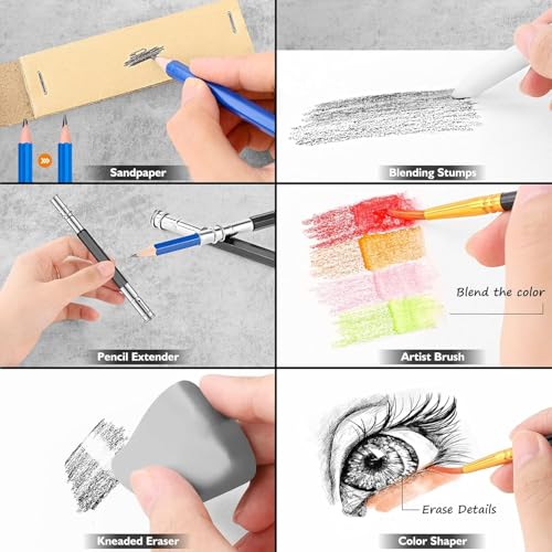 Regalo perfecto para todos los amantes del arte: fabricado con materiales de alta calidad, este kit de lápices de dibujo es un gran regalo para artistas, principiantes del arte, adultos, aficionados. Juego de suministros ideales para artes y manualidades, regalo para Halloween, Navidad, regalo de cumpleaños, fiesta, Acción de Gracias, cumpleaños, Año Nuevo, Día de San Valentín, Año Nuevo.