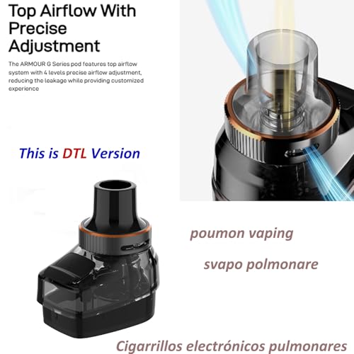 Especificaciones: Cápsulas vacías de la serie vaporesso Armour G de 5 ML (2 / paquete), adecuadas para Armour g, Armour gs, relleno superior (versión DTL), sin nicotina