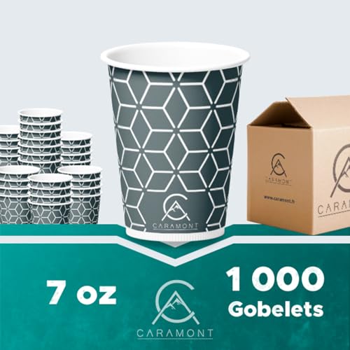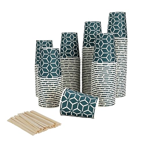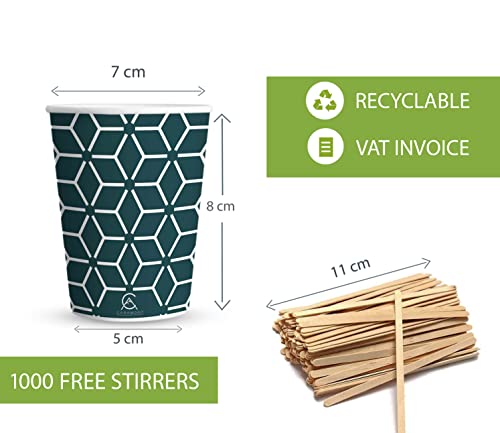Caramont,1000 Vasos de Cartón de 7 Onzas con Agitadores de Madera,Ecológicos y Desechables,Resistentes Al Calor, Ideales para Café,Té,Cumpleaños,Etc.