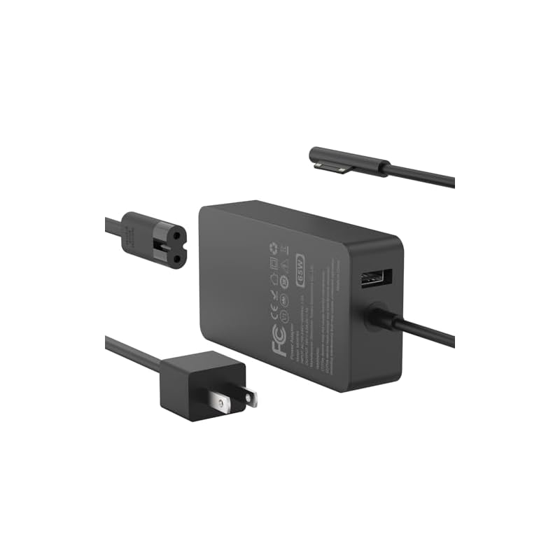 Especificaciones: Cargador de 65 W compatible con Microsoft Surface Pro 11, 10, 9, 8, 7+, 7, 6, 5, 4, 3, X, adaptador de corriente para Windows Surface Laptop 7/6/5/4/3/2/1, Go Tablet, Book 3/2/1, compatible con 44W
