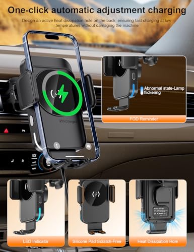 Carga de alineación automática: este soporte de cargador inalámbrico para automóvil tiene un sensor avanzado integrado, simplemente coloca tu teléfono después de encenderlo, ajustará tu teléfono en la mejor zona de carga mientras identifica tu dispositivo de forma inteligente y selecciona un rendimiento de potencia de carga óptimo, mejora enormemente la eficiencia de carga
