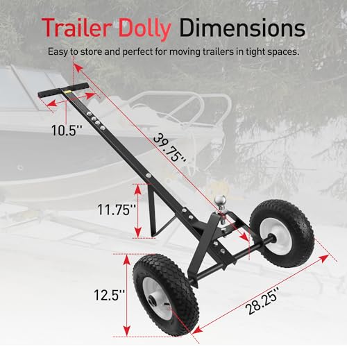 Capacidad resistente de 600 libras: construida con acero recubierto de polvo negro, esta plataforma de remolque ofrece una fuerte durabilidad y resistencia a largo plazo al óxido o al desgaste. Maneja fácilmente hasta 600 libras de capacidad, por lo que es ideal para mover pequeños remolques, motos acuáticas o barcos alrededor de tu camino de entrada o área de almacenamiento
