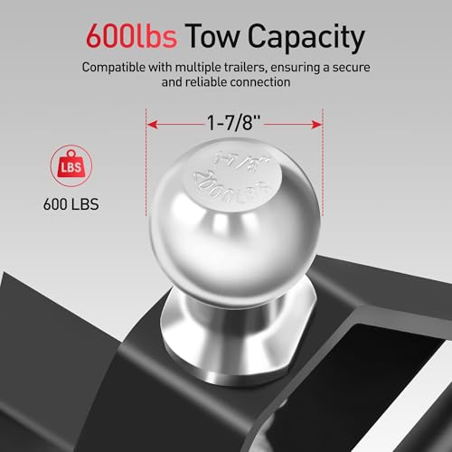 Compatibilidad con bola de enganche de 1-7/8 pulgadas: viene con una bola de enganche de 1-7/8 pulgadas que se adapta a la mayoría de remolques pequeños, incluidos remolques utilitarios, remolques de embarcaciones y remolques de motos acuáticas. Está diseñado para conectar y mover de forma segura tu remolque con confianza y estabilidad