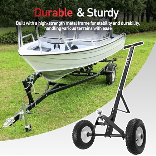 YOLANDO Carrito de remolque, capacidad de 600 libras, carrito de remolque para remolque, barco, embarcación, moto acuática, bola de enganche de 1-7/8 pulgadas con neumáticos sólidos de 12 pulgadas, acero recubierto de polvo negro