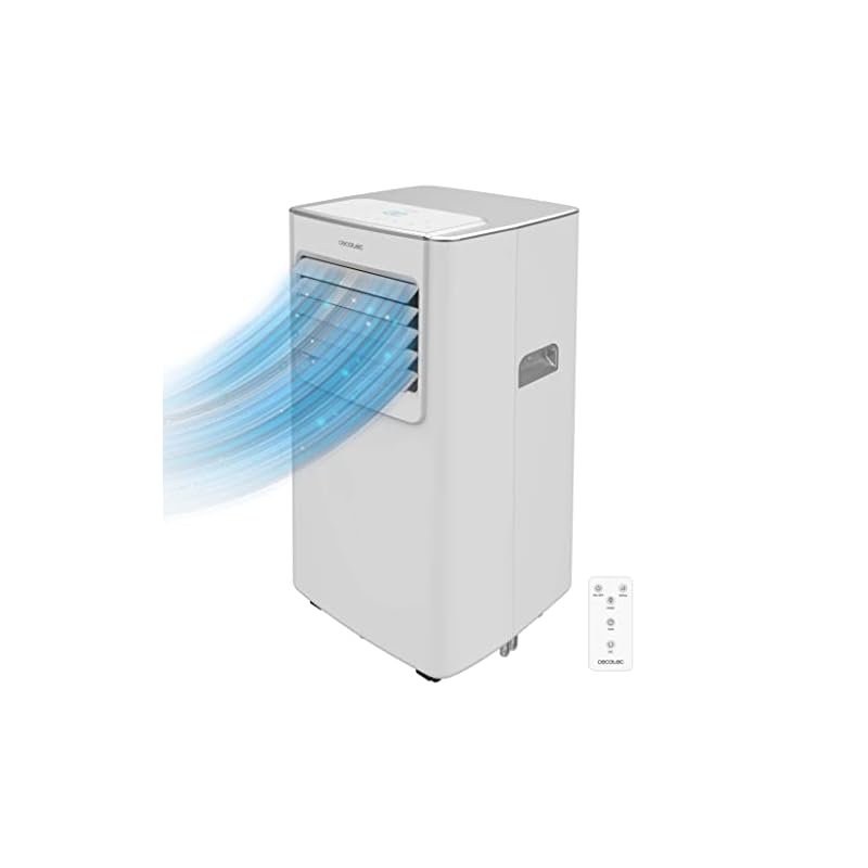 Especificaciones: Cecotec Aire Acondicionado Portátil con Mando a Distancia ForceClima 7100 Soundless, 7000 BTU, Pantalla LED, 4 Modos, 2 Velocidades, Cobertura hasta 20 m2, Kit de instalación de ventana incluido