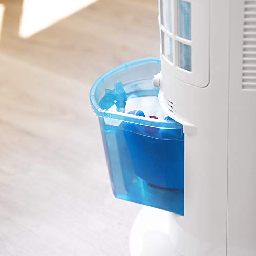 Su depósito de 2 litros de capacidad permite un funcionamiento prolongado. Cuanto más fría esté el agua más frescor generará. El depósito extraíble permite ser rellenado de agua con facilidad gracias a una botella de cristal por ejemplo. Junto con el climatizador, se incluyen también 2 hieleras para disminuir la temperatura del agua, y por lo tanto, del flujo de aire.