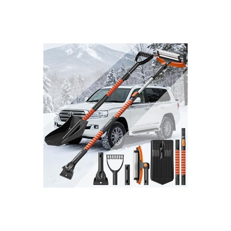 Kit de pala de nieve 4 en 1: combina un cepillo de nieve, raspador de hielo, escobilla de coche, pala de nieve para una limpieza rápida en todo el entorno. Las cerdas pulidas densas de 7 capas eliminan la nieve rápidamente sin rayar; el raspador de hielo grueso rompe fácilmente el hielo grueso; la escobilla de silicona suave elimina la nieve sobrante y las heladas rápidamente; y la pala de nieve resistente es más resistente y profunda en las capas de nieve para una limpieza eficiente. Este kit de herramientas para quitar nieve de invierno ayuda a limpiar tus parabrisas, techos y espejos sin esfuerzo y es perfecto para automóviles, SUV y camiones
