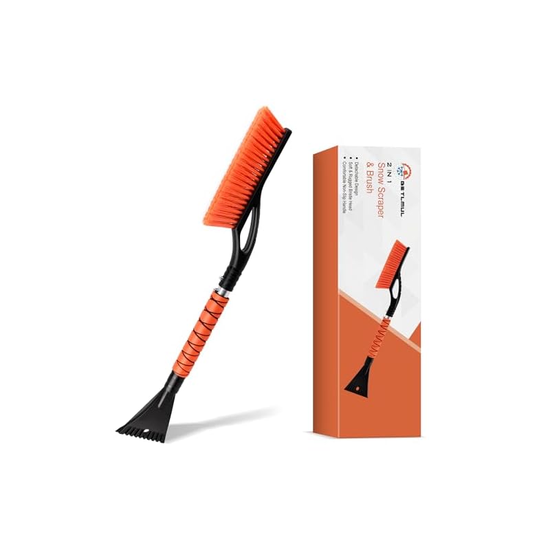 Tamaño óptimo para una cobertura completa: Con una longitud total de 27 pulgadas, esta herramienta ofrece un fácil acceso a todo tu vehículo. Incluye un cabezal de cepillo de 8.5 pulgadas para barrer la nieve y un raspador de hielo de 4.4 pulgadas para una limpieza profunda, asegurando un parabrisas transparente y superficies libres de nieve en poco tiempo.