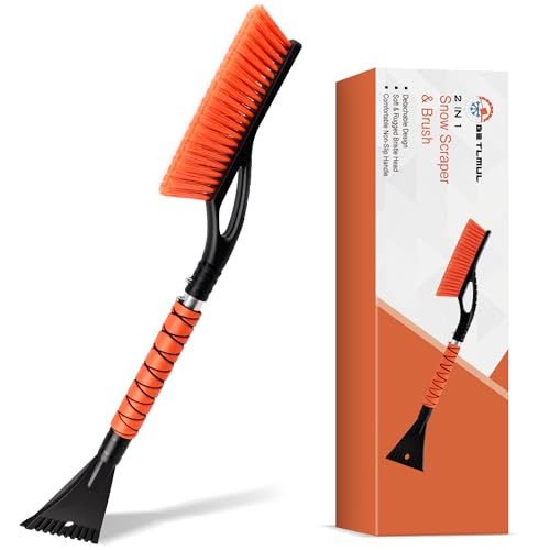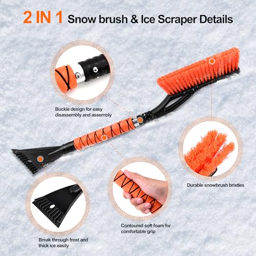 Especificaciones: Cepillo de nieve resistente de 27 pulgadas y raspador de hielo | Cabeza de cerdas sin arañazos y raspador desmontable con cuerpo de aluminio y agarre ergonómico | Accesorios de invierno para