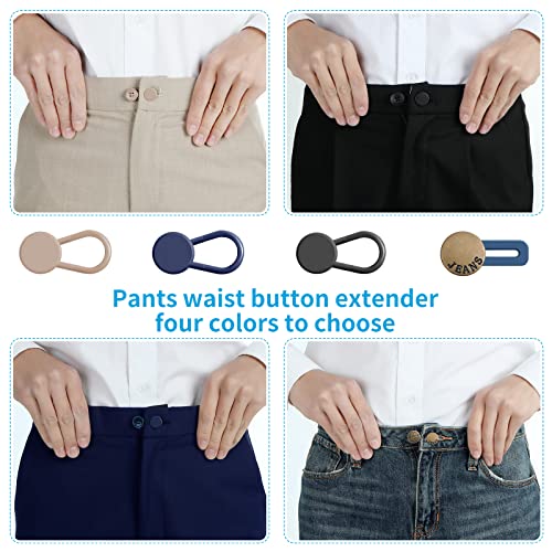 Amplio uso: este ajustador de cintura de 12 piezas en 4 colores y 4 tamaños se puede combinar con varios estilos de pantalones. Este extensor de botón para pantalones con cintura extendida es más cómodo de llevar, fácil de desmontar y se puede reutilizar. Es adecuado para hombres y mujeres, y jeans, pantalones, pantalones de traje, pantalones, faldas y extensores de botones para el embarazo temprano
