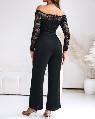 CHICME – Overol casual de una pieza para mujer, con hombros descubiertos, ribete de encaje, pantalones de pierna recta