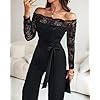 Especificaciones: CHICME – Overol casual de una pieza para mujer, con hombros descubiertos, ribete de encaje, pantalones de pierna recta