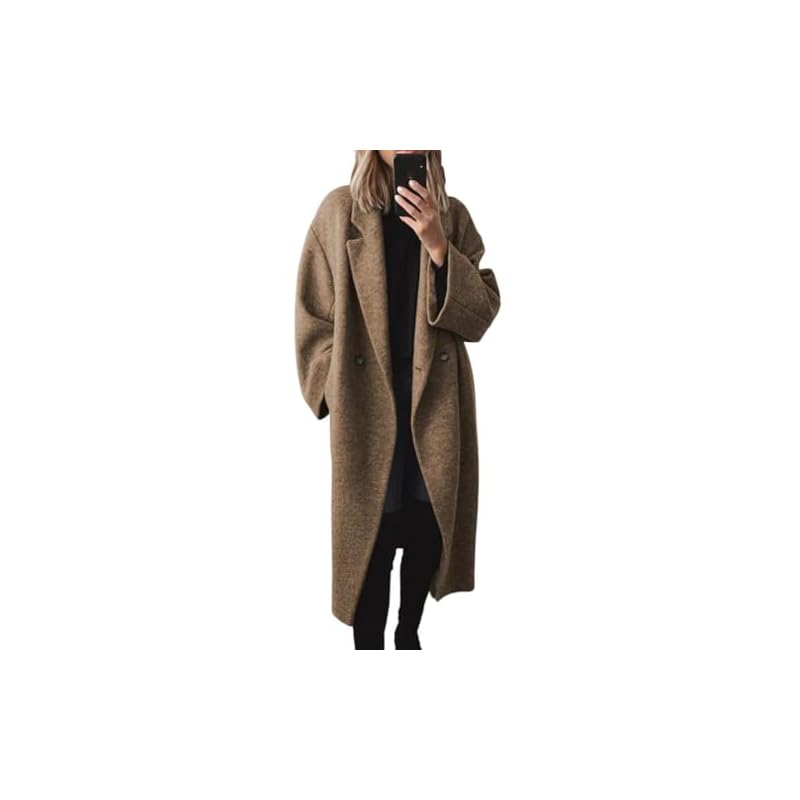 Especificaciones: chouyatou Abrigo de lana de doble botonadura de invierno para mujer, gabardina larga con solapa de muesca