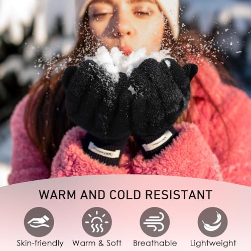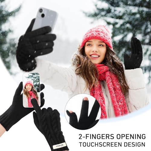 Clothirily Guantes de invierno para mujer, cálidos y suaves, guantes de invierno elásticos térmicos para pantalla táctil, guantes de punto para clima frío