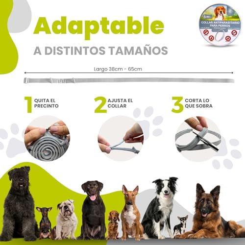 Especificaciones: Collar Antiparasitario para Perros, Collar Antipulgas y Garrapatas para Perros y Gatos, Seresto Collar Perro para Desparasitar, Collar Perros Anti Mosquitos y Piojos
