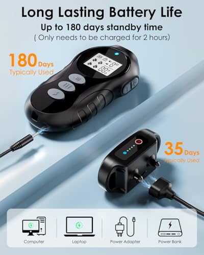 Batería de larga duración, carga rápida: disfruta de un entrenamiento ininterrumpido con una batería que dura más de 35 días. El collar de choque DDZ se carga rápidamente y se mantiene alimentado durante más tiempo, por lo que es el collar de entrenamiento de perros más confiable con control remoto para uso diario, viajes o fines de semana largos al aire libre.
