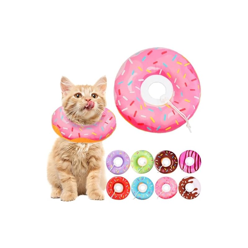 Collar de cono de gato suave, collar de recuperación de gatos para curación de heridas, lindo dona ajustable para gatitos para dejar de lamer, cómodo y ligero, collares isabelinos para gatitos después
