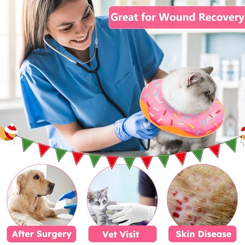 Especificaciones: Collar de cono de gato suave, collar de recuperación de gatos para curación de heridas, lindo dona ajustable para gatitos para dejar de lamer, cómodo y ligero, collares isabelinos para gatitos después