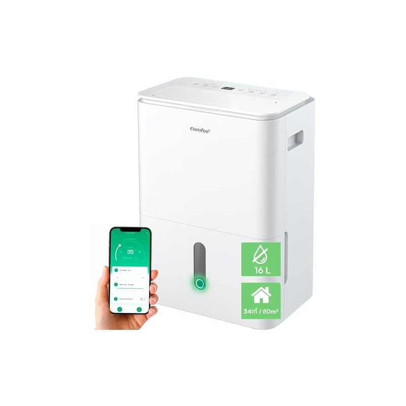 Especificaciones: COMFEE Deshumidificador Easy Dry 16L para Humedad interior hasta 32 m2 / 80 m3 – Deshumificador Silencioso con App Control – Deshumificadores de humedad con depósito extraible y 4 modos de función