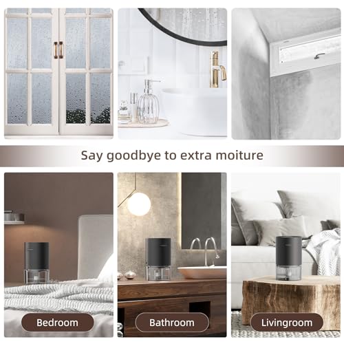 Fácil, compacto y portátil – Fácil de operar, con un botón de inicio, cómodo drenaje. El diseño de drenaje es simple y cómodo de limpiar, adecuado para personas mayores. El deshumidificador para dormitorio ocupa un área inferior al tamaño de una palma, es portátil y fácil de mover a cualquier escena, incluso al escritorio