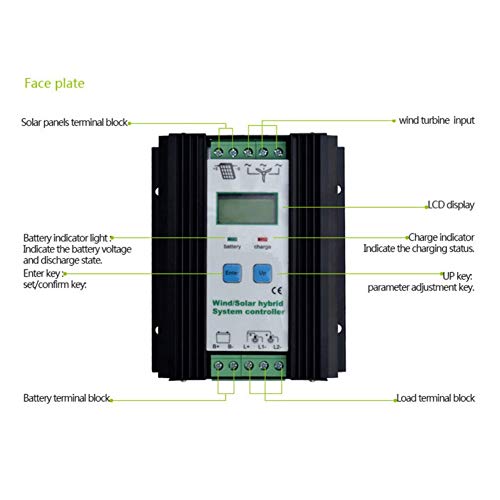 Especificaciones: Controlador de carga solar Controlador híbrido solar eólico de 1200 W Aerogenerador de 800 W Controlador de carga de panel solar de 400 W Controlador de batería automático de 12 V/24 V con pantalla