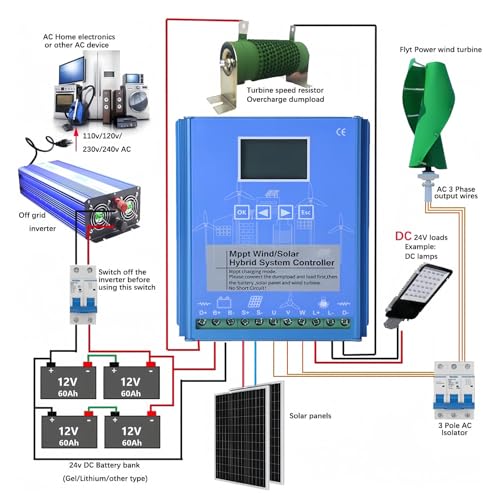 Especificaciones: Controlador de Sistemas Híbridos Eólicos y Solares de 14000W, Controlador de Carga MPPT Híbrido Eólico y Solar con Carga de Descarga, 12V24V / 24V48V (Eólico
