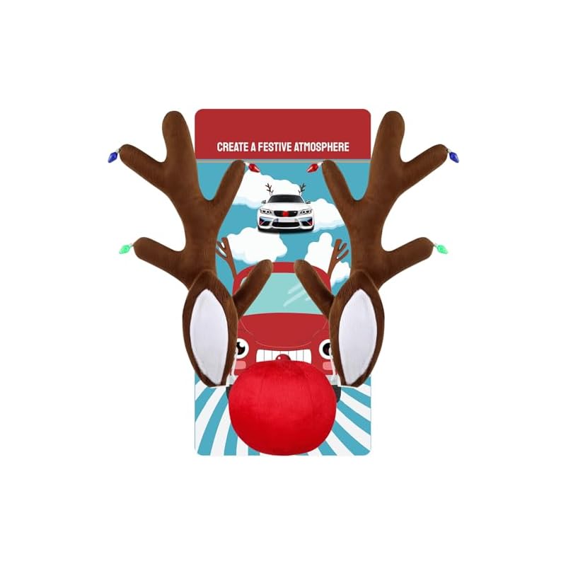 Regalo perfecto para las fiestas: viene en un paquete festivo listo para regalo, ideal para fiestas de Navidad, desfiles de automóviles o como un regalo caprichoso. Haz sonreír a amigos, niños y vecinos con esta divertida decoración de vehículo con temática de Rudolph