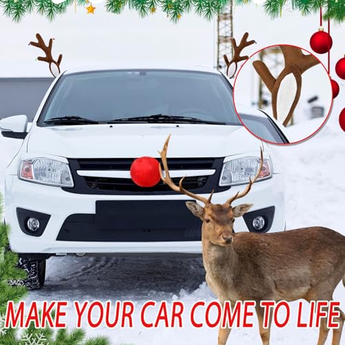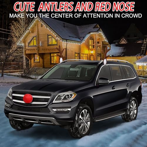 [Llama la atención estas fiestas] Transforma tu automóvil en un reno alegre con cuernos de reno de felpa, orejas lindas y una nariz roja brillante. Las luces colgantes añadidas hacen que tu vehículo brille durante los paseos nocturnos y capturan miradas alegres dondequiera que vayas
