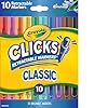 Crayola Clicks Marcadores de punta retráctil (10 quilates), rellenos de calcetines para niños y niños pequeños, juego de marcadores de arte lavables con punta cónica, suministros para libros para