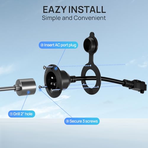 Protección contra la intemperie: el enchufe de CA está diseñado para el exterior, el sello de goma impermeable integrado y la tapa protectora protegen eficazmente la salida de la lluvia, la nieve, el polvo y las condiciones climáticas adversas